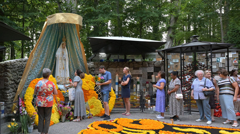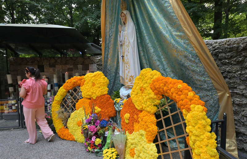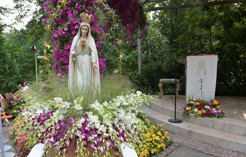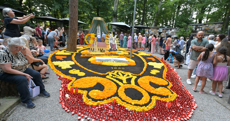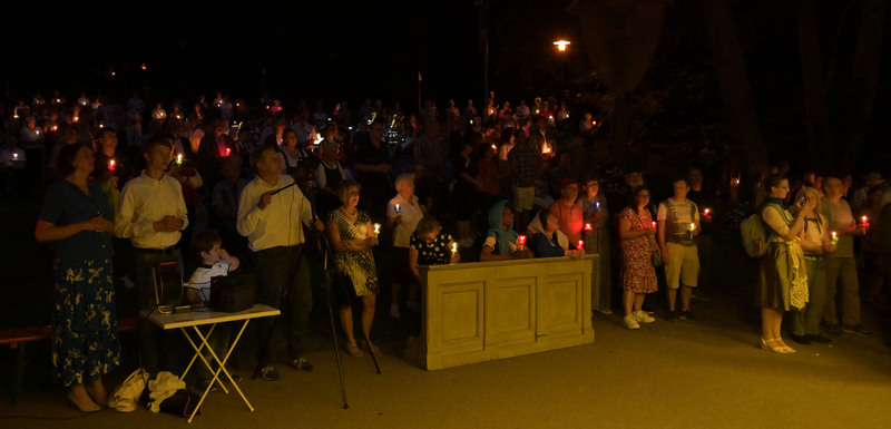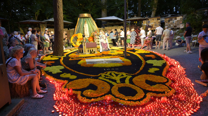 Hunderte Pilger bei der Lichterprozession                                        Fatima Grotte wunderbar geschmückt